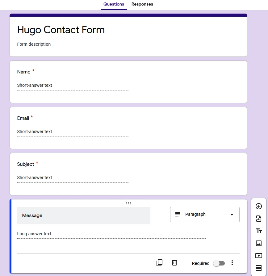 Hugo is great for a static site. No need for complicated setups, no database or data to be hacked. static sites have ton of advantages but when it comes to dynamic content like contact form it is little bit complicated to setup. I’m gonna use Google Forms to setup Contact form on Hugo Static site with custom thank you page on submit.